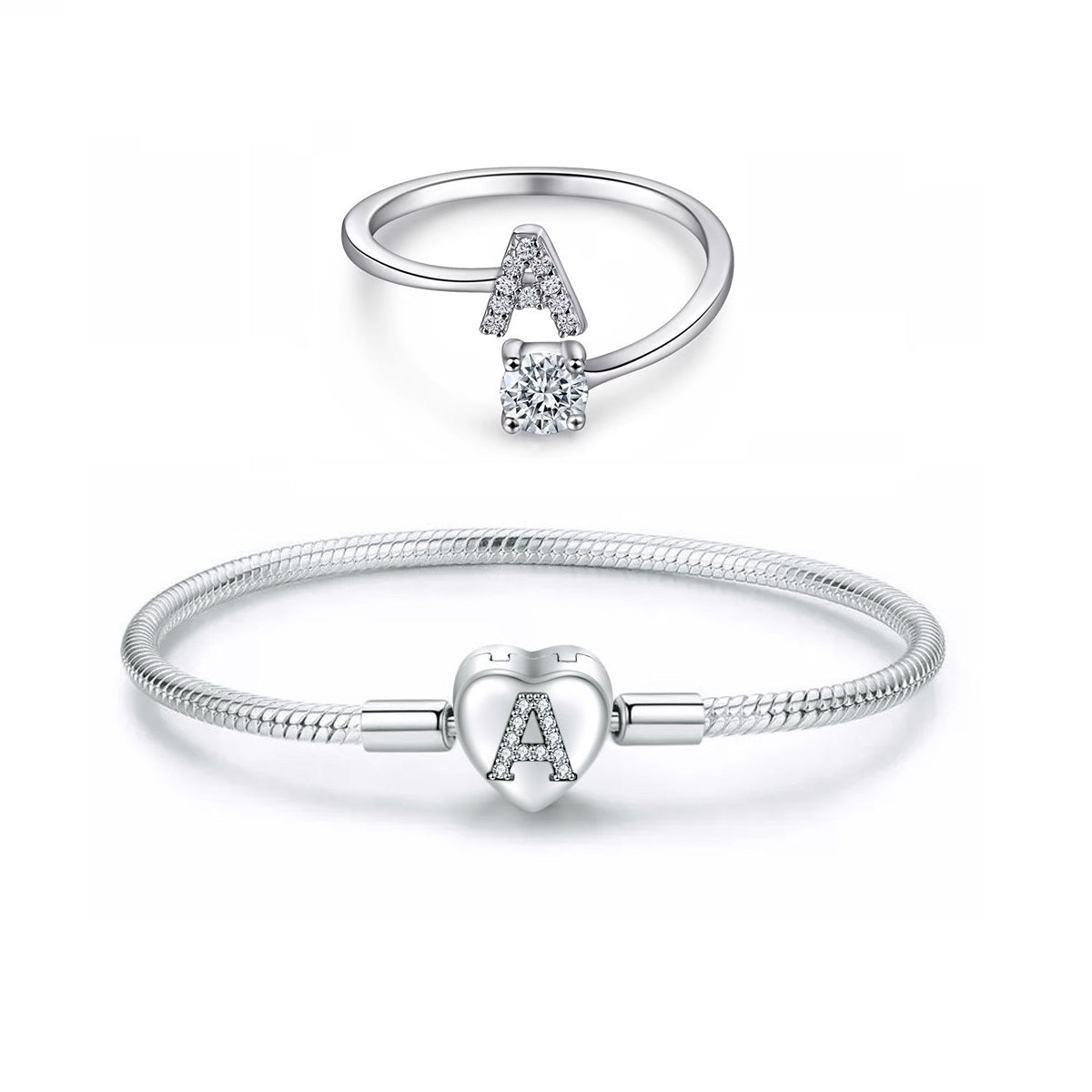 A Harfi Kadın Gümüş Charm Bileklik (Yüzük Hediyeli)