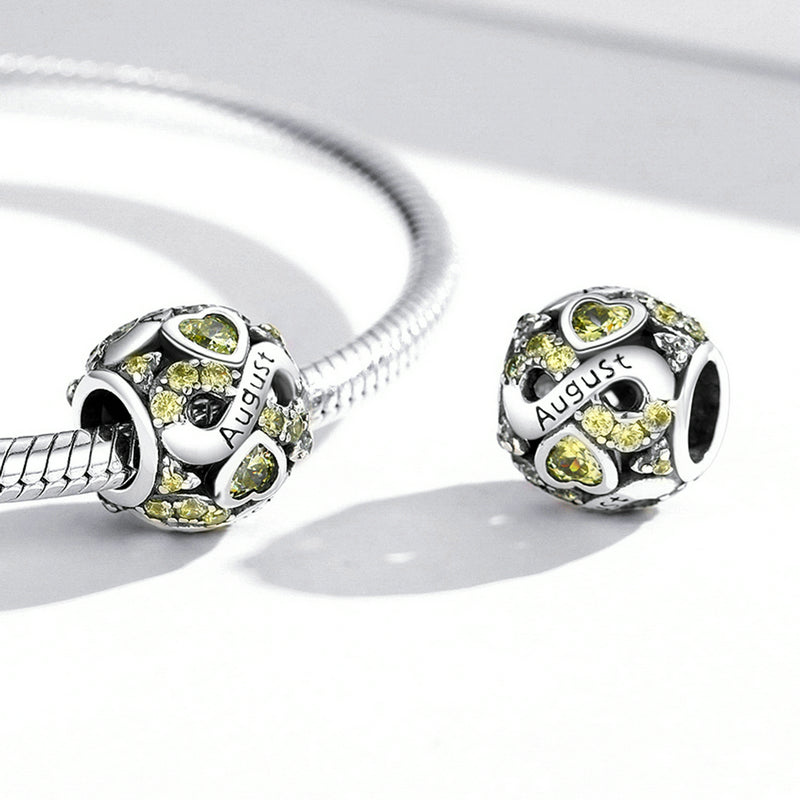 Ağustos ayının canlı tonları dostluk ve neşenin sembolüdür. Parlak kübik zirkon taşı, hayat dolu enerjiyi ve sadakati yansıtır. Bu charm, neşeyi paylaşmanın ve kalıcı bağların özel bir hatırlatıcısıdır.