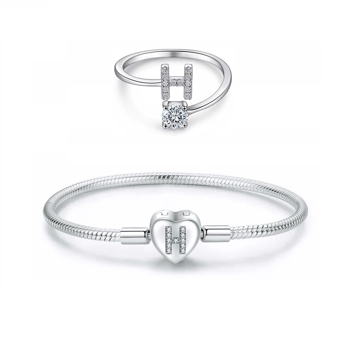 H Harfi Kadın Gümüş Charm Bileklik (Yüzük Hediyeli)