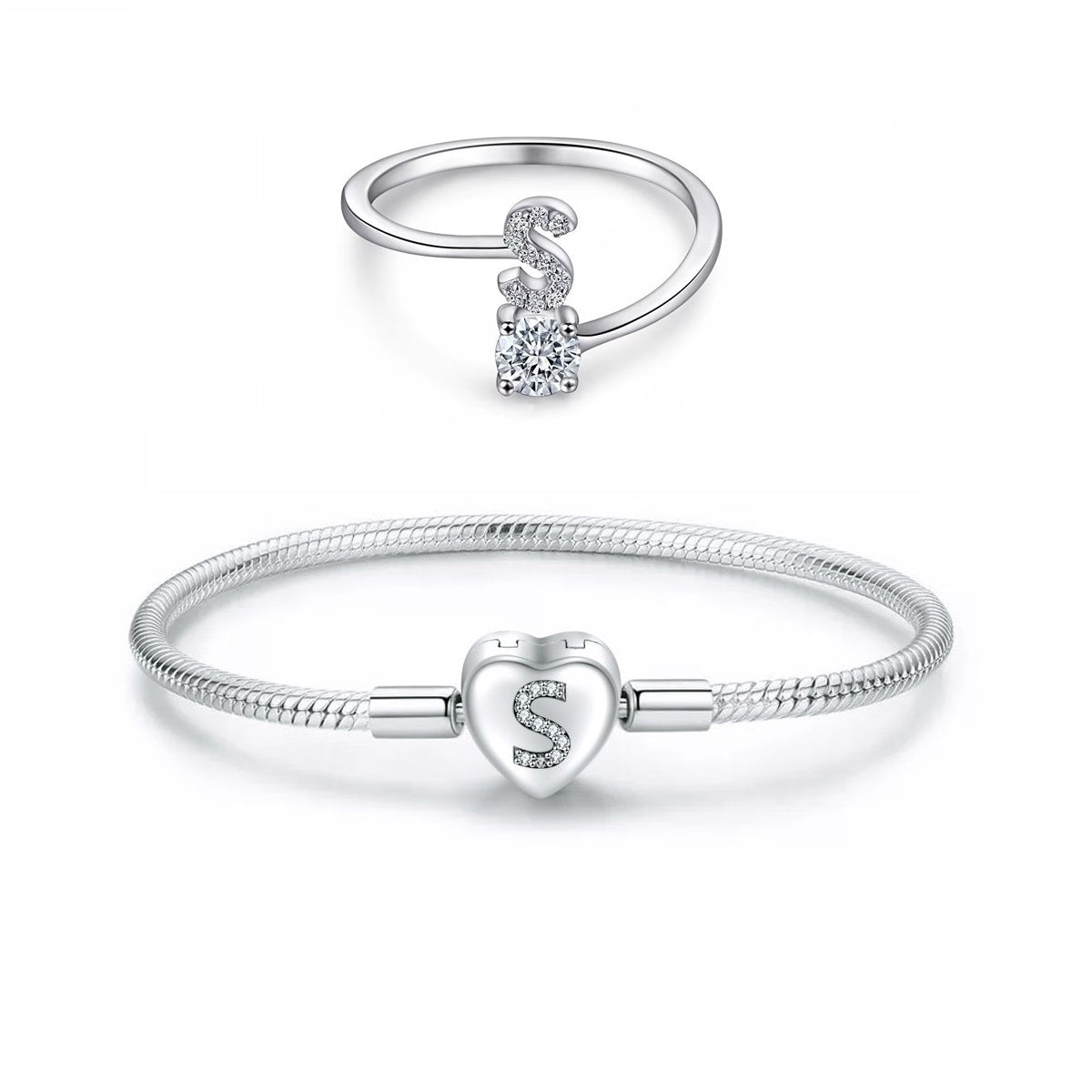 S Harfi Kadın Gümüş Charm Bileklik (Yüzük Hediyeli)