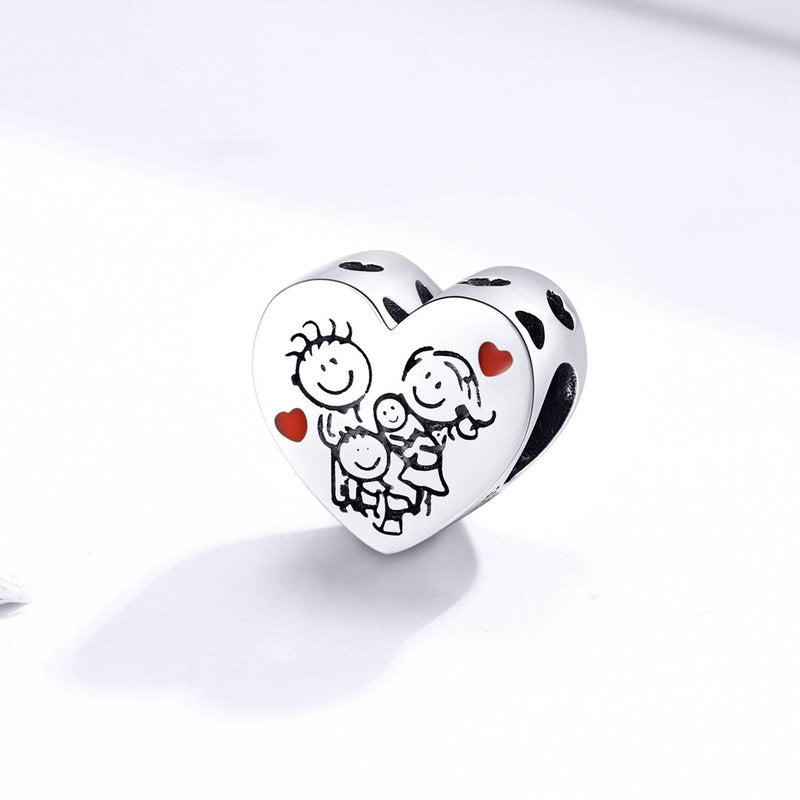 Bu şık 925 ayar gümüş charm, aile bağlarını ve sevgiyi kutlar. Kalp formunda tasarlanan parça, üzerinde neşeli bir aile figürü ile süslenmiş olup kırmızı detaylarla tamamlanmıştır. Sevdiklerinizle geçirdiğiniz özel anları yansıtan bu charm, bilekliğinize kişisel bir dokunuş katar.