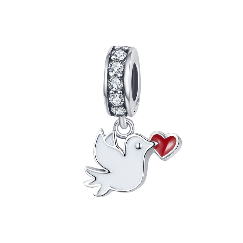 Zarafetin ve sevginin simgesi bu özel charm, barışı ve saf duyguları temsil eden güvercin figürüyle hayat buluyor. Ağzında taşıdığı zarif kalp detayıyla, sevdiklerinize olan bağlılığınızı her an yanınızda taşımanızı sağlar.