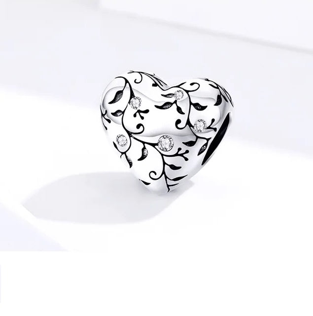Sarmaşık yapraklarının zarif desenleriyle bezeli bu özel gümüş charm, kalp formuyla sevginin en saf halini yansıtıyor. Doğadan ilham alan detayları, her anınıza anlam ve estetik katarken, ışıltılı gümüş dokusuyla stilinize zarif bir dokunuş ekliyor. Sevgiyle örülmüş bu tasarım, hem kendinizi hem de sevdiklerinizi özel hissettirmek için ideal.