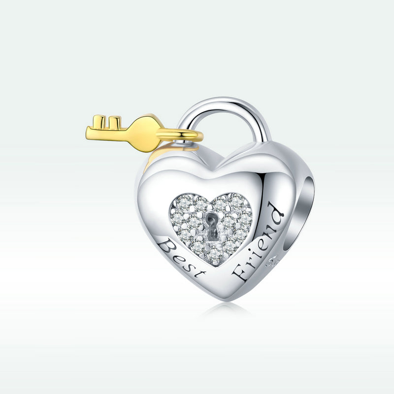 Bu zarif gümüş charm, kalp şeklindeki tasarımıyla sevginin ve bağlılığın simgesi olurken, üzerine işlenmiş "Anahtar" ve "En İyi Arkadaşım" yazılarıyla özel bağınızı sonsuzlaştırıyor. Kalbinin anahtarını taşıyan, her an yanınızda olan o özel kişiye verilebilecek anlam yüklü bir hediye.