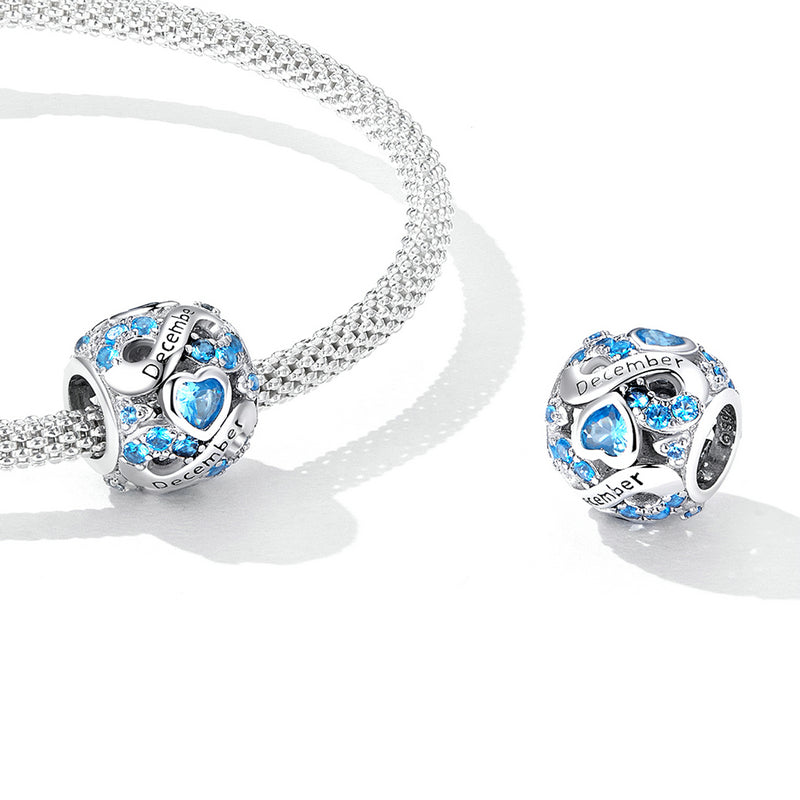 Aralık ayının canlı mavi tonu umut ve huzurun sembolüdür. Kübik zirkon taşının parlaklığı kış aylarının serinliğini sevgiyle ısıtır. Bu charm, kalıcı anıların ve içsel dinginliğin takılabilir sembolüdür.