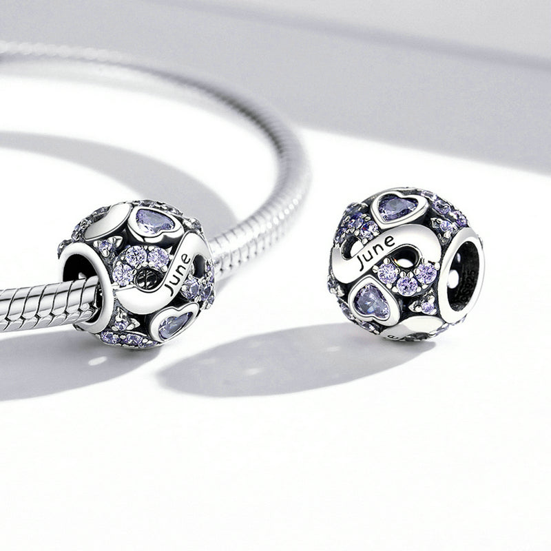 Haziran ayının yumuşak ışıltısı masumiyetin ve zarafetin simgesidir. Kübik zirkon taşının incelikli parıltısı, saf duyguları ve kalıcı anıları hatırlatır. Bu charm, zarif bir şekilde geçmiş ile geleceği bağlayan özel bir semboldür.
