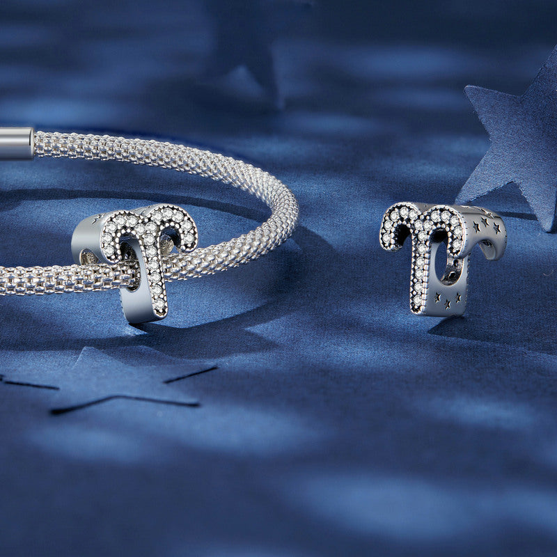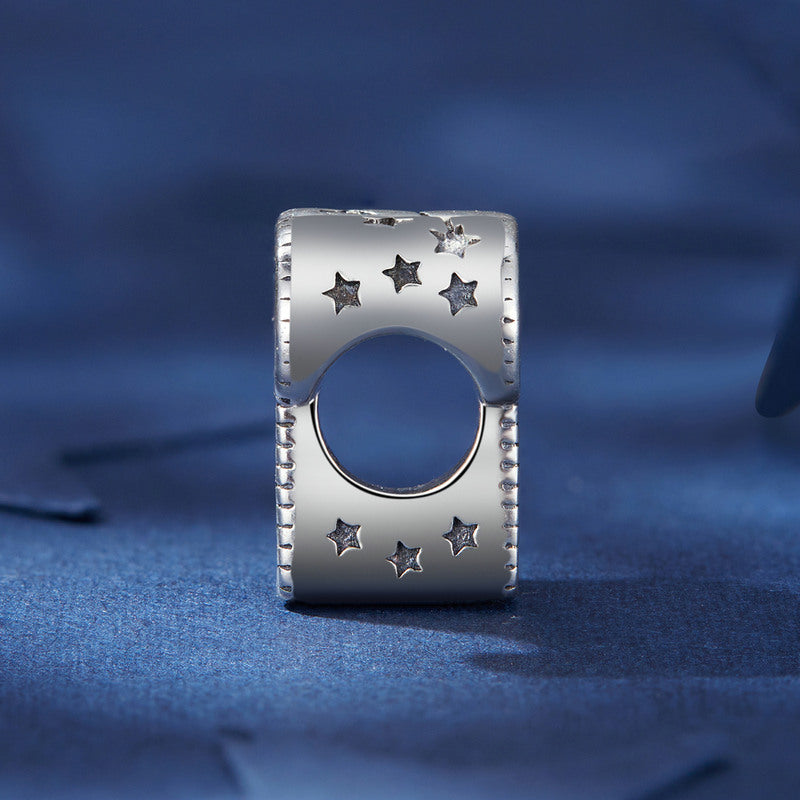 - Ters çevrilebilir charm iki şekilde kullanılabilir, kübik zirkon serpiştirilen parlak kısmı ile yan kısmı küçük yıldız detayları içerir.