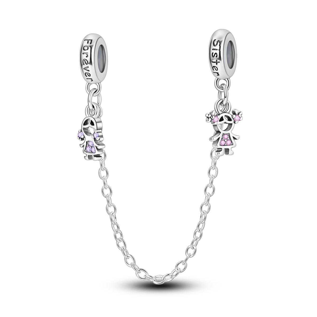 Birbirine bağlı iki figürle tasarlanan bu güvenlik zinciri charm, kız kardeşlik bağını ve kalıcı sevgiyi simgeler. Uçlardaki zarif figür detayları ve ince zincir formu, bilekliğindeki charmların güvenle sabitlenmesini sağlarken anlamlı bir hikâye taşır. Günlük kullanıma uygun, duygusal ve zamansız bir tasarımdır. 925 ayar gümüşten üretilmiştir.