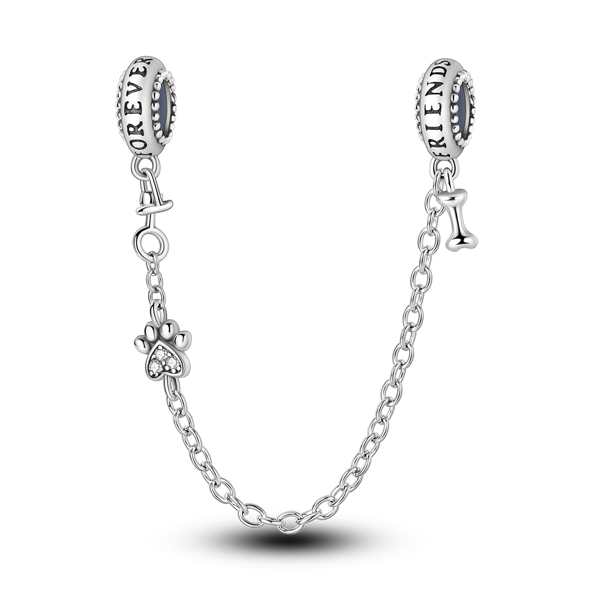 Sevimli pati ve kemik figürleriyle tasarlanan bu güvenlik zinciri charm, evcil dostlara duyulan sevgiyi zarif bir şekilde yansıtır. İnce zincir yapısı, bileklikteki charmların güvenle sabitlenmesine yardımcı olurken tasarıma hareketli bir görünüm kazandırır. Günlük kombinlere kolayca uyum sağlayan bu anlamlı parça, 925 ayar gümüşten üretilmiştir.