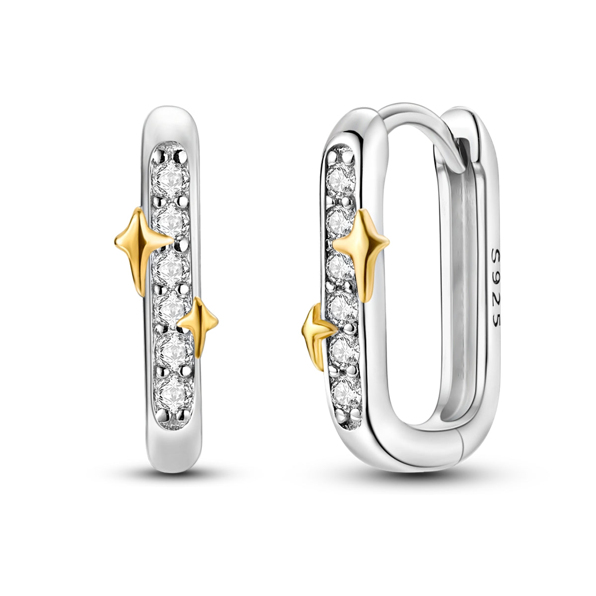 Parlak taşlarla çevrelenen zarif form, altın tonlu yıldız detaylarıyla yumuşak bir ışıltı kazanır. Günlük kombinlere eşlik edecek kadar sade, tek başına fark yaratacak kadar dikkat çekici bir tasarımdır. 925 ayar gümüşten üretilmiştir.