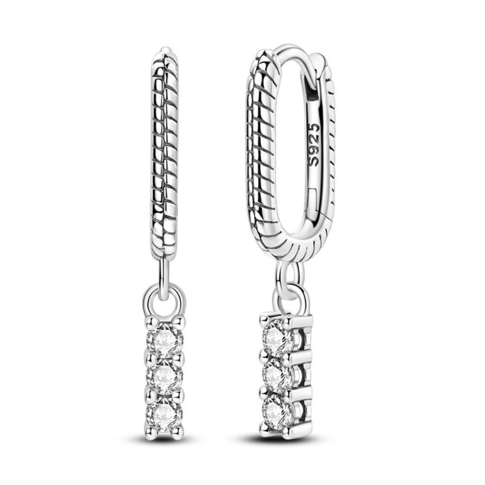 Zarif zincir dokulu halka formu, aşağı doğru uzanan ışıltılı taş detayıyla modern ve dengeli bir görünüm sunar. Hareket ettikçe ışığı yakalayan tasarımı sayesinde tek başına güçlü bir etki yaratır, günlük kombinlerden özel anlara kadar kolayca uyum sağlar. Minimal çizgileri ve zamansız yapısıyla koleksiyonunuza sade bir şıklık katan bu tasarım, 925 ayar gümüşten üretilmiştir.