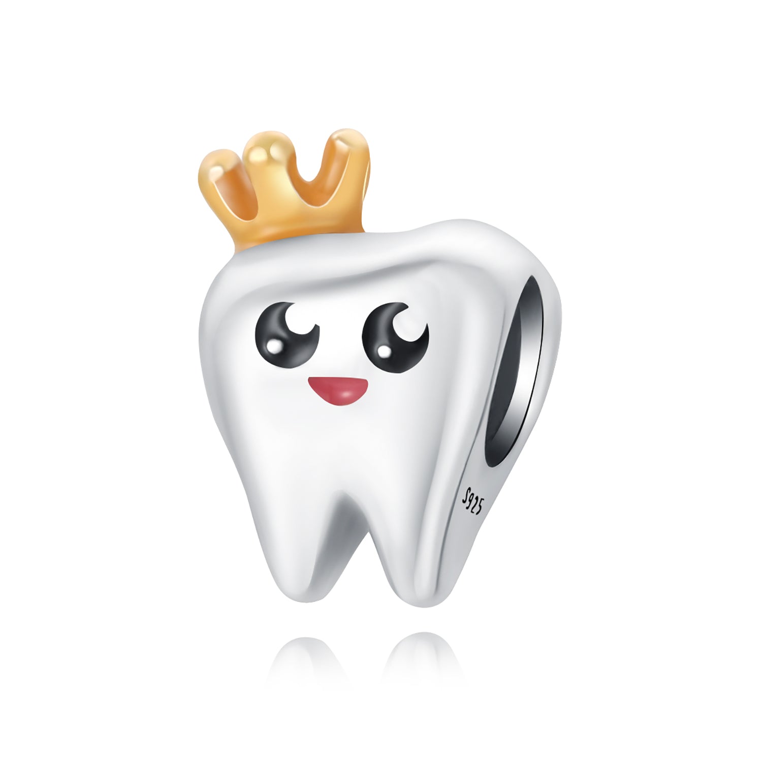 Sevimli bir ifadeyle tasarlanan bu taçlı diş charm, bakımın, sağlığın ve gülümsemenin önemini simgeler. Altın tonlu taç detayı, diş hekimliğine ve özene verilen değeri zarif bir şekilde vurgular. Eğlenceli ama anlamlı tasarımıyla özellikle diş hekimleri, diş hekimliği öğrencileri ve sağlık temalı koleksiyonları sevenler için özel bir parçadır. Charm, 925 ayar gümüşten üretilmiştir.
