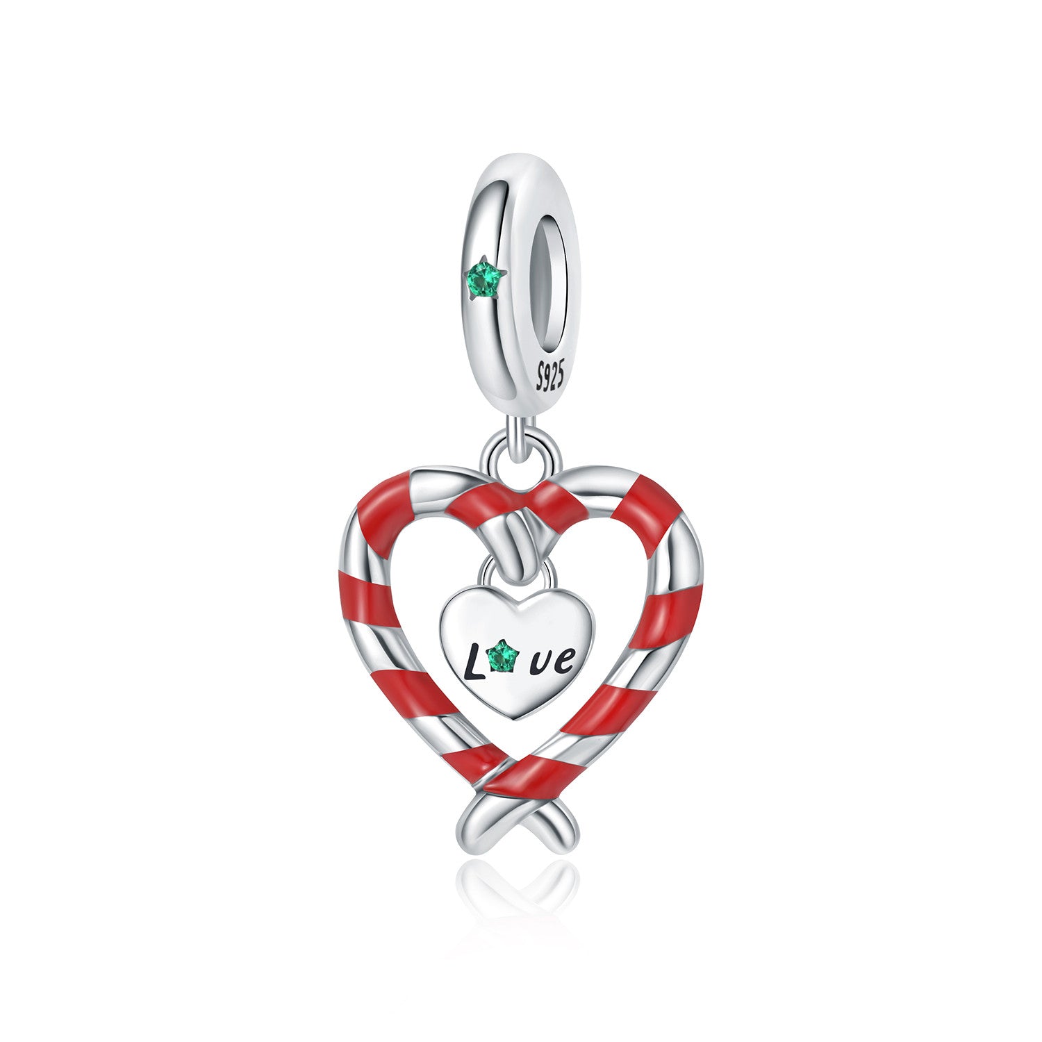 Kırmızı ve beyaz şeritli şeker kamışı formu, neşeli ve sıcak anları simgelerken ortasında yer alan kalp figürü tasarıma romantik bir anlam katar. Kalbin üzerindeki “Love” yazısı ve yeşil taş detayı, sevginin küçük ama güçlü bir ifadesi olarak öne çıkar. Günlük kombinlere eğlenceli ve duygusal bir dokunuş eklemek için tasarlanan bu charm, bilekliğinde sevgi dolu bir hikâye anlatır. 925 ayar gümüşten üretilmiştir.