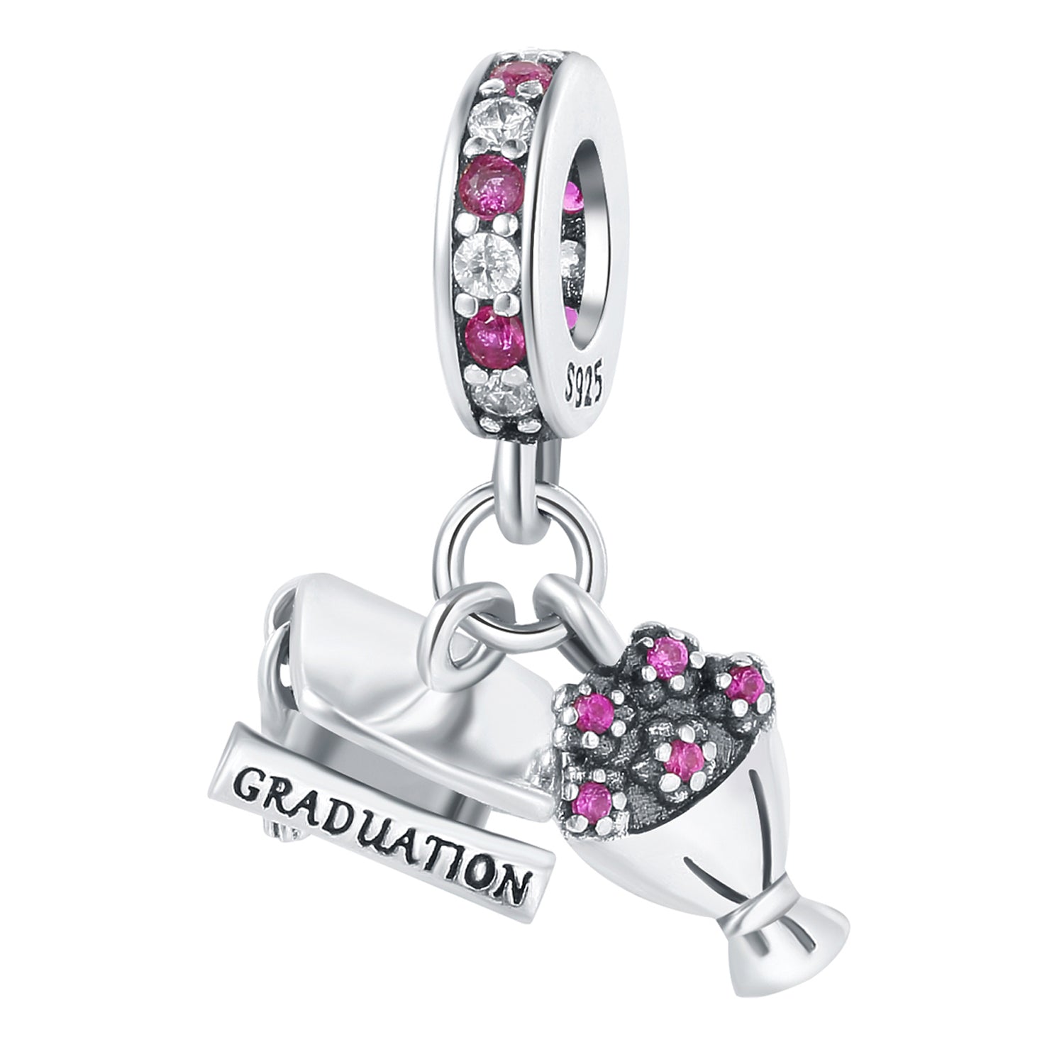 Başarıyı ve yeni bir dönemin başlangıcını simgeleyen bu sallantılı charm, mezuniyet anlarının gururunu zarif detaylarla yansıtır. Diploma formu üzerindeki “Graduation” (Mezuniyet) yazısı, emekle kazanılan başarıyı ve tamamlanan yolculuğu temsil eder. Işıltılı taşlarla süslenen kep detayı, geleceğe umutla bakmayı ve yeni hedefleri simgeler. 925 ayar gümüşten üretilen bu anlamlı tasarım, hayatınızda önemli bir dönüm noktasını her zaman yanınızda taşımanız için özel olarak tasarlanmıştır.