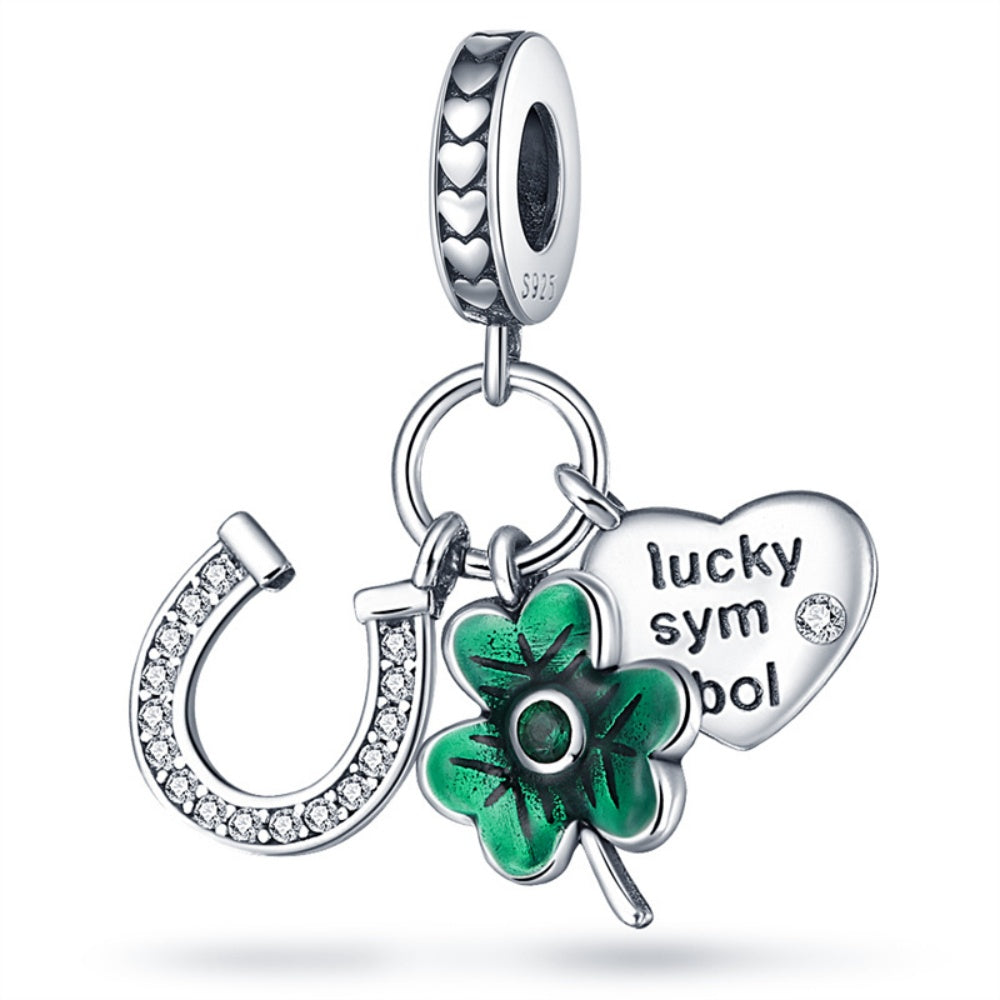 At nalı, dört yapraklı yonca ve kalp figürlerini bir araya getiren bu sallantılı charm, şansı ve iyi dilekleri simgeler. Parlak taş detayları ve hareketli tasarımıyla bileklikte zarif bir görünüm sunar. Günlük kullanıma ve anlamlı hediyelere uygun, zamansız bir parçadır.
